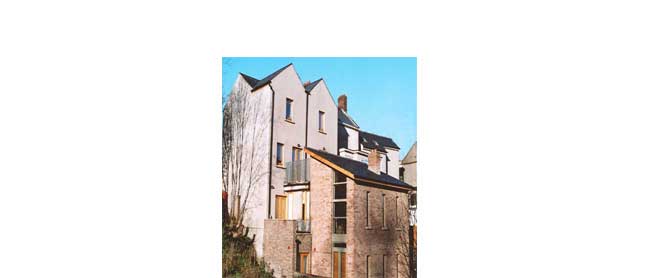 Four own door ‘dwellings’ were built in 2003. The site had a street to one side and a public green space to the other. there was a 6.1 meter drop from front to back. The project looked at addressing both situations.