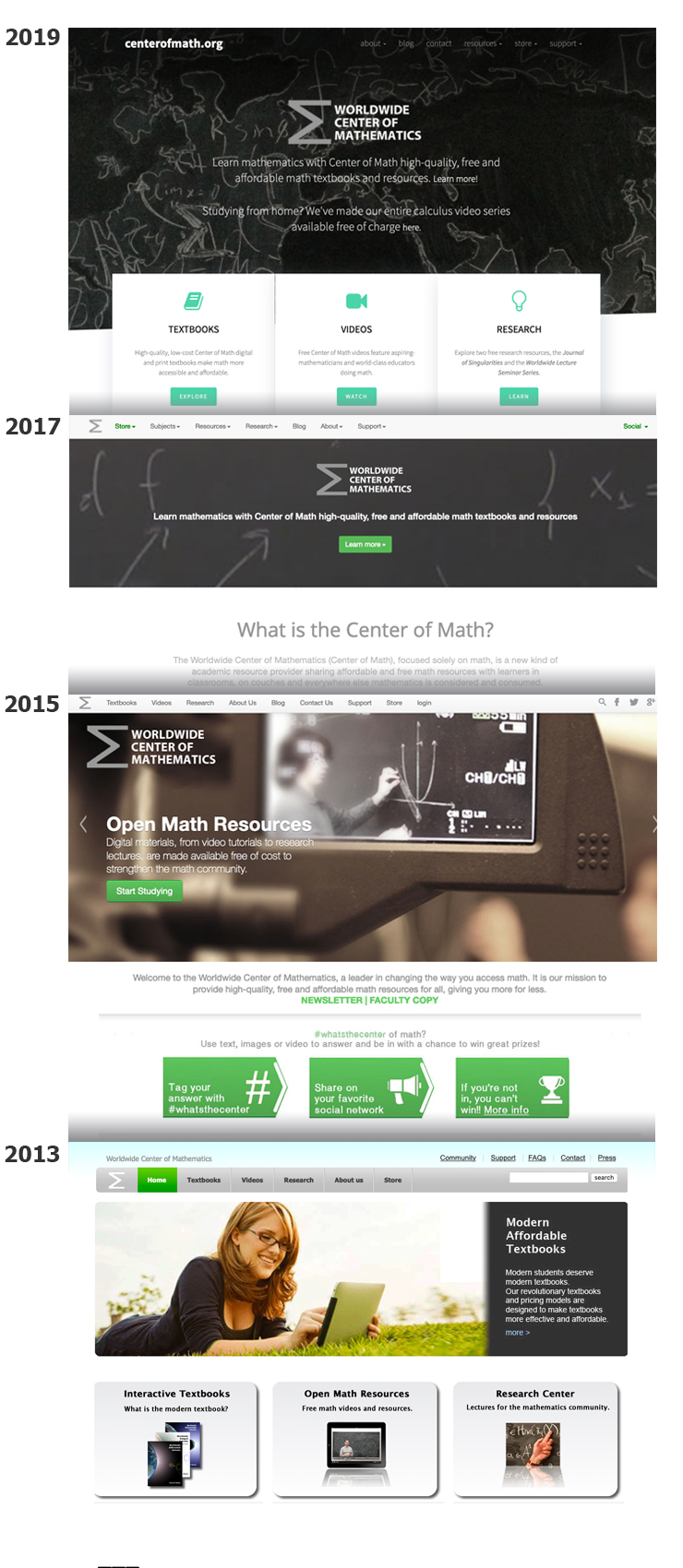 Since 2009 my primary focus has been on the website centerofmath.org.
